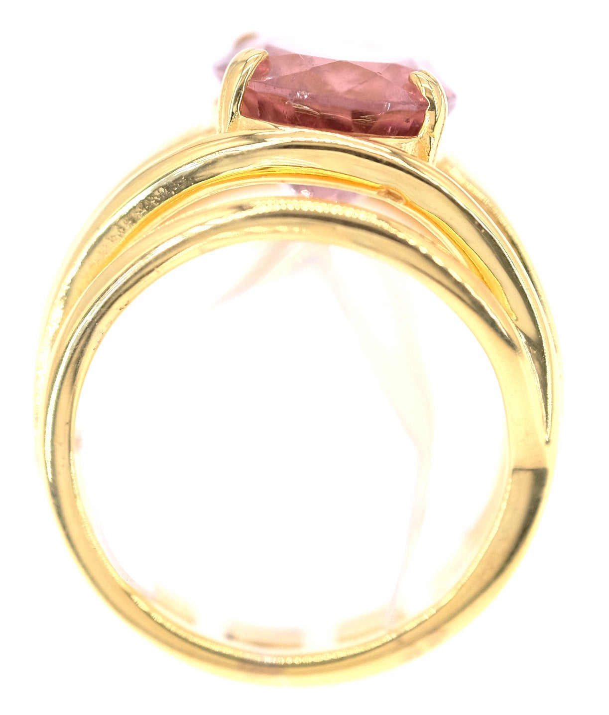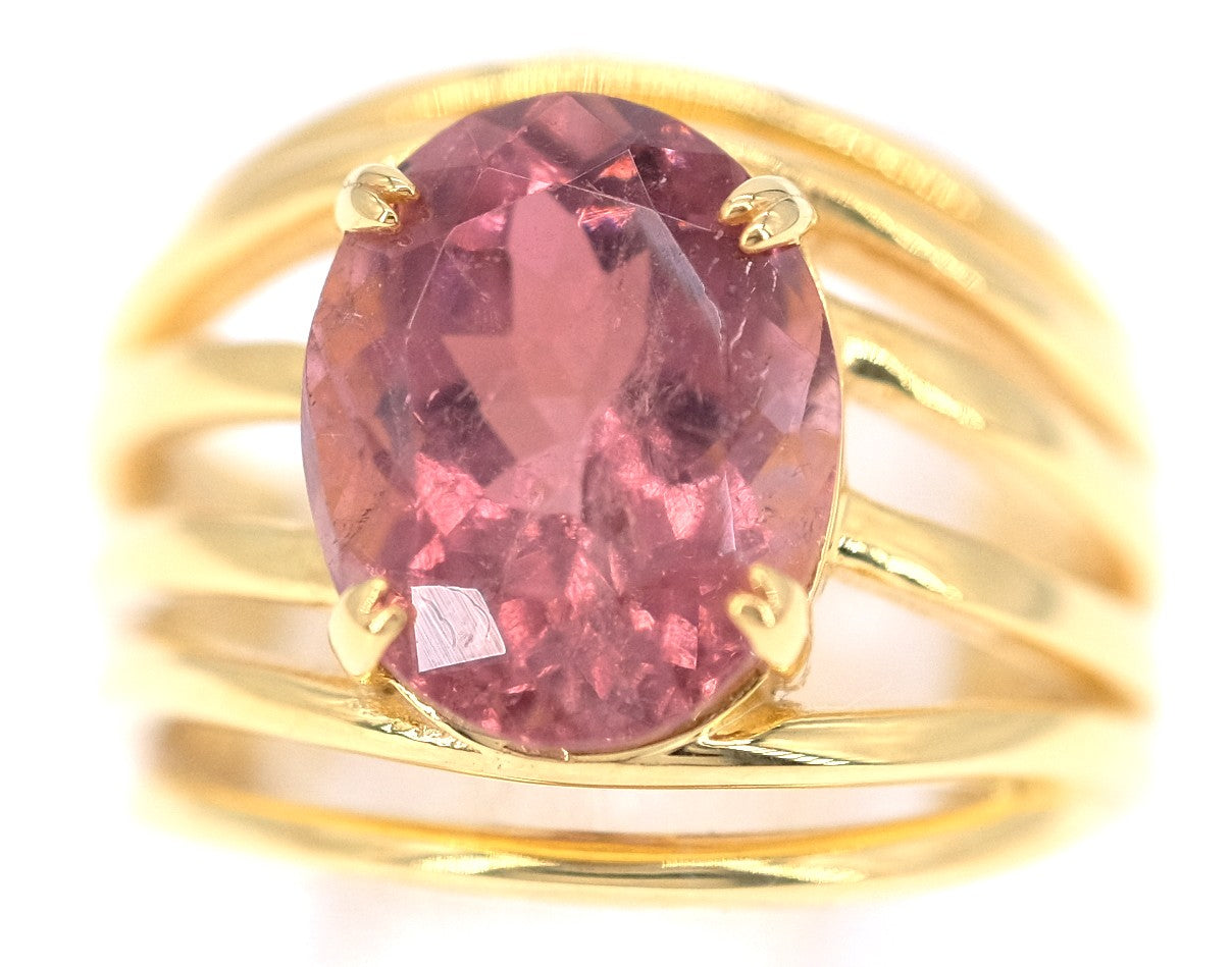 A unique silver plated gold ring set with a unique large natural oval faceted candy pink tourmaline.