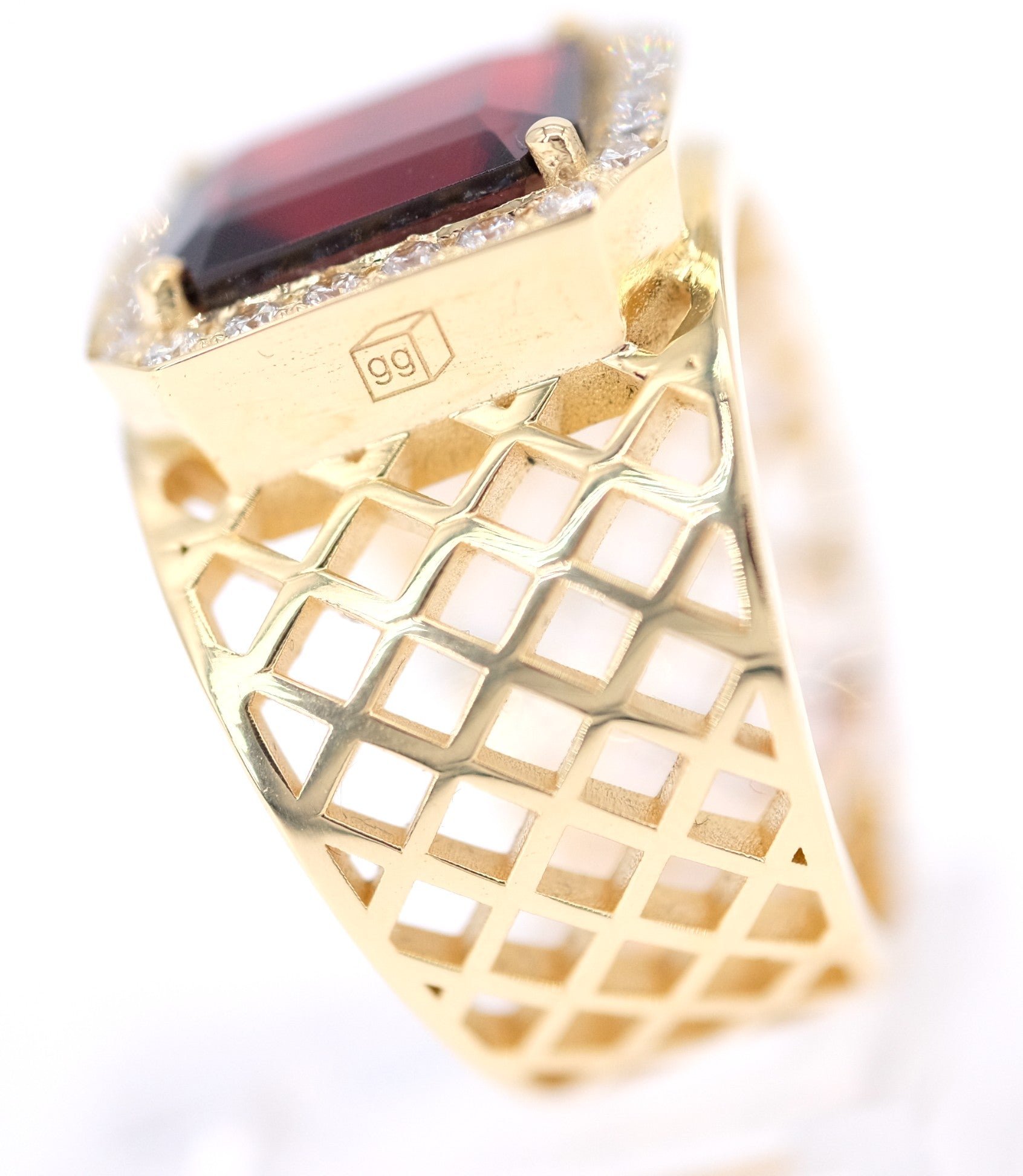 Gemstone: 1 Rectangular/octagonal faceted Natural Rhodolite Garnet ~5.5-6.00ct - natural round diamonds ~0.40Ct